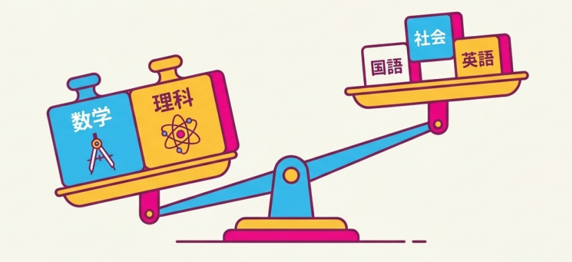 • 理科: 物理・化学・生物・地学の全範囲から満遍なく出題されます。苦手分野を作れません。