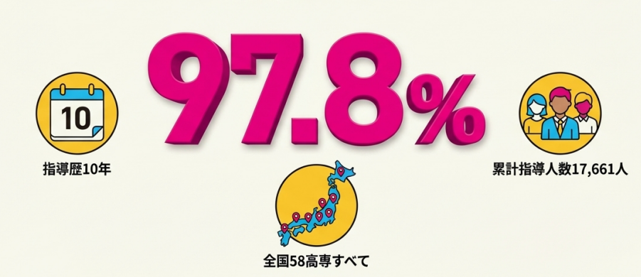 ナレッジスターは、高専入試指導歴10年、累計指導人数17,661人(※無料相談等含む)という圧倒的な実績を持ちます。